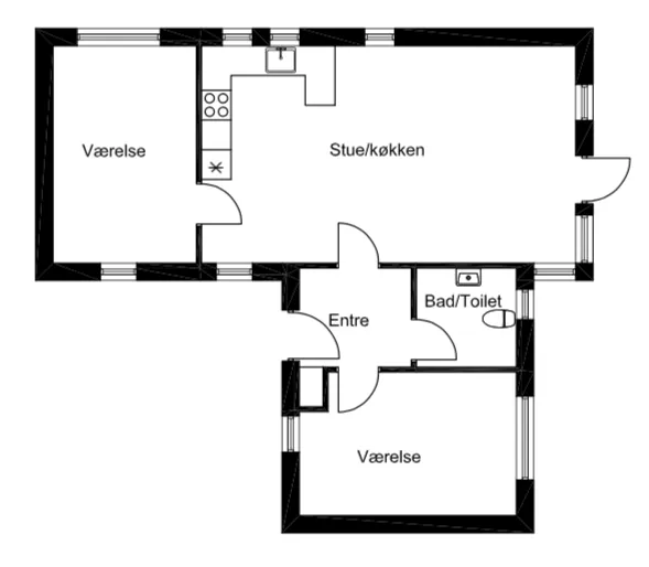 Andelen er en type B1 på 82 m². Rækkehuset indeholder kombineret stue og køkken og to værelser. Andelen består desuden af entré og toilet/bad med brus. Til andelen hører også en lille have og et redskabsskur.